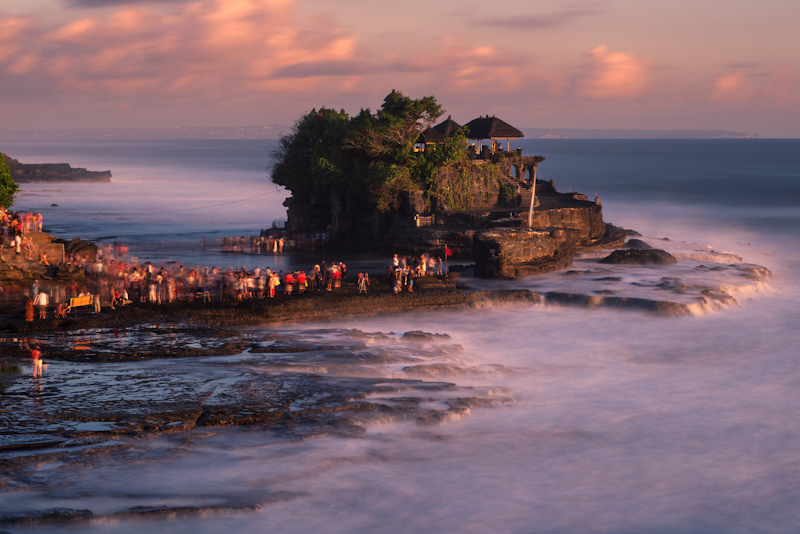 The tourists standing at the Tanah Lot, enjoying the beautiful moment of Sunset.