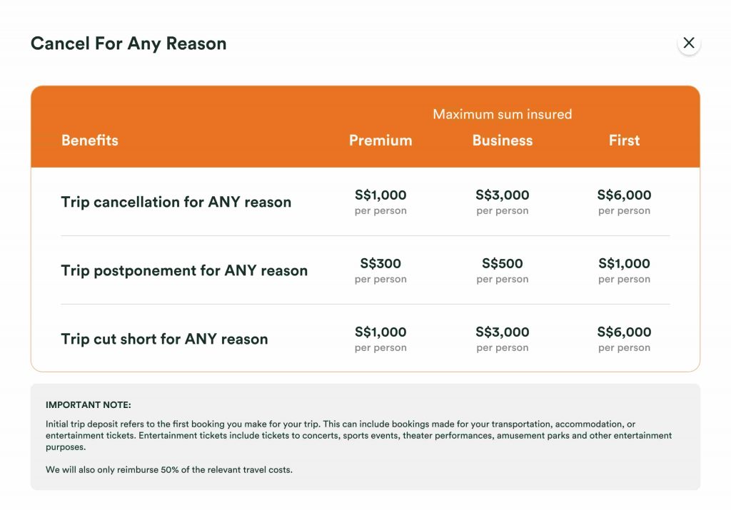 We have enhanced our FWD Travel insurance by introducing a new add-on coverage called Cancel For Any Reason Cover, also known as ‘cancel for any reason’ coverage, this optional benefit extends beyond the usual list of covered events, providing you with enhanced financial protection for unforeseen events.