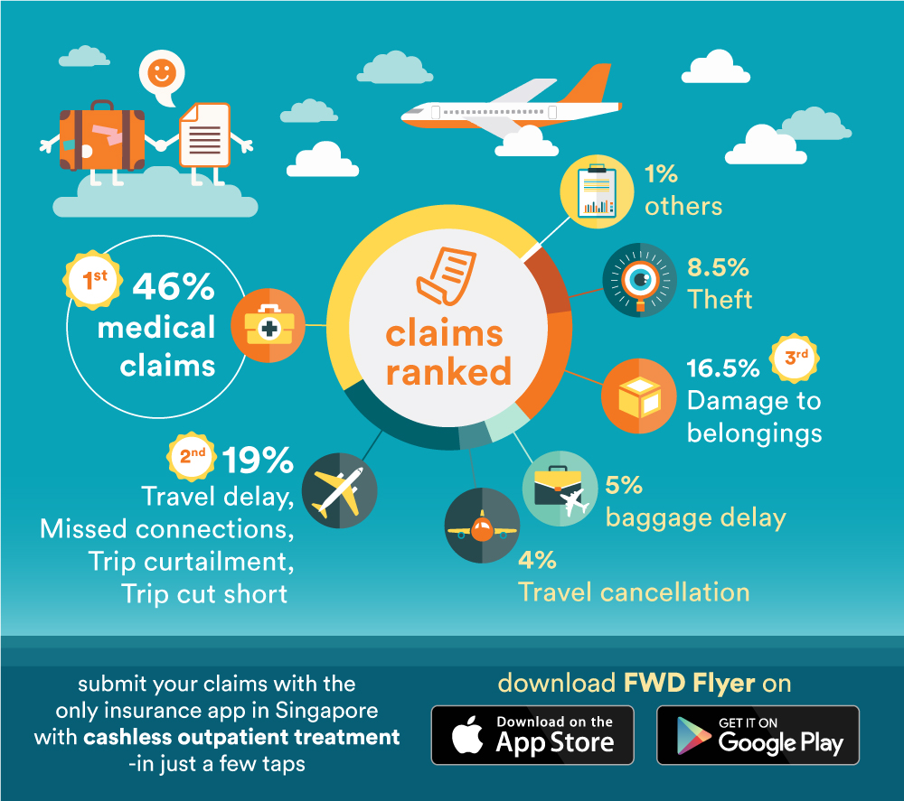 Bonus facts: Curious to know what travel insurance claims you’ll likely encounter when travelling? Here are the various types of claims made by FWD Travel insurance customers ranked according to volume.