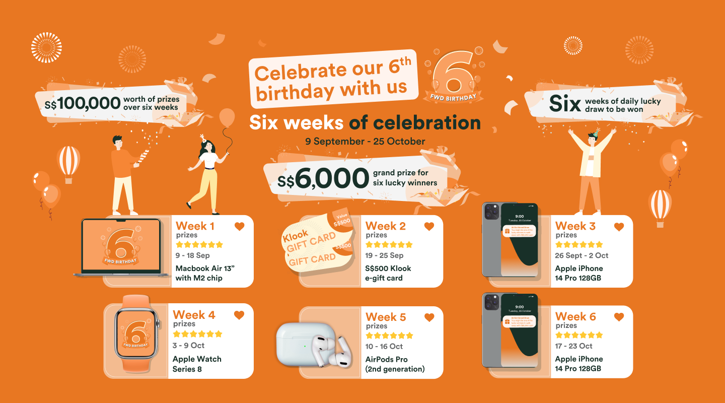 Celebrate our 6th birthday and win over S$100,000 worth of prizes over 6 weeks